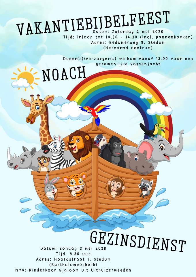 Zaterdag 2 mei: Vakantiebijbelfeest, Zondag 3 mei Gezinsdienst Geplaatst op 16 april 202616 april 2026 door M1